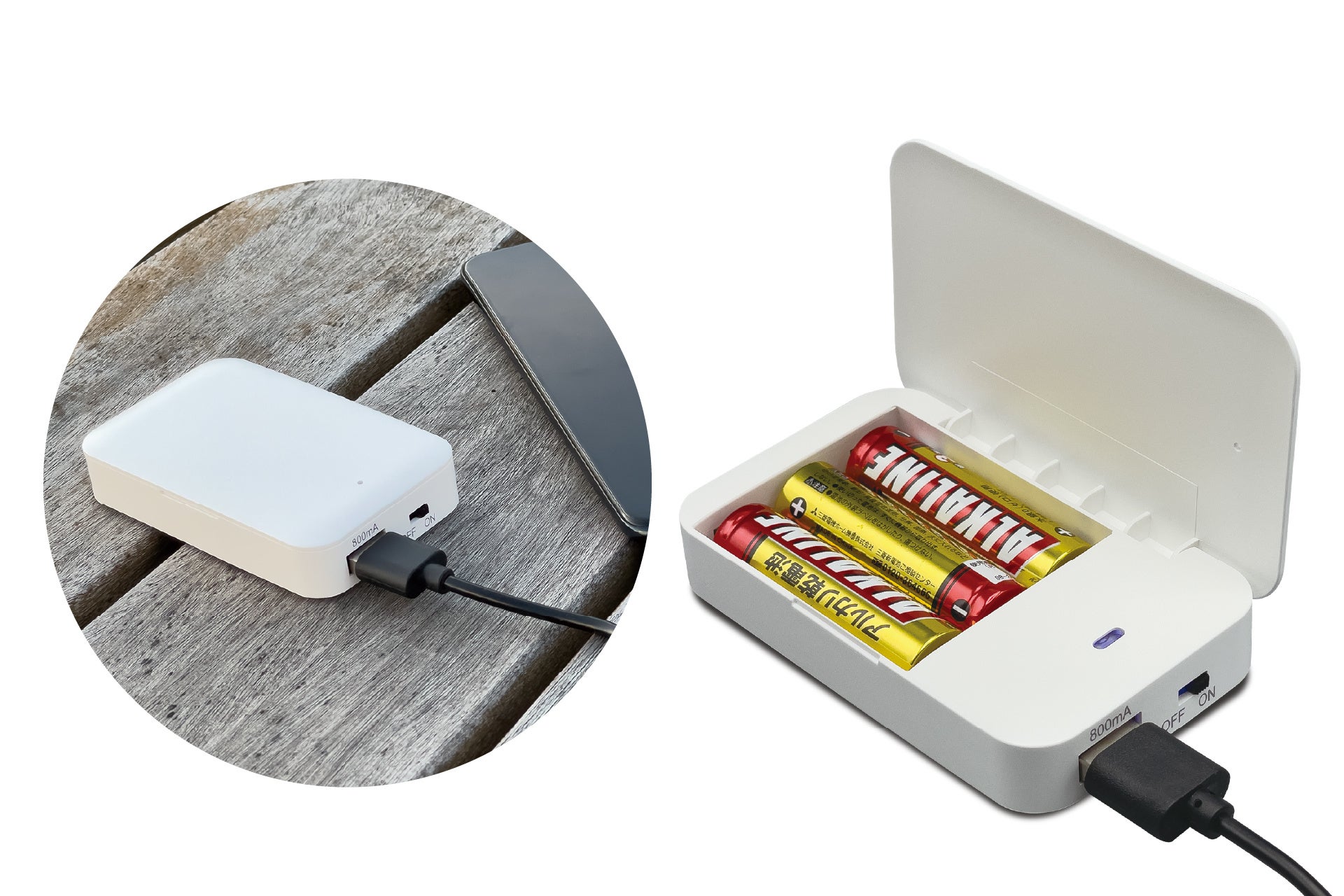 特徴:外出先や緊急時に頼れる充電器!電池式なのでコンセントやソーラーパネルがない場所でも、スマートフォンや小型デバイスを手軽に充電可能。旅行、キャンプ、災害時など、さまざまなシーンで活躍します。