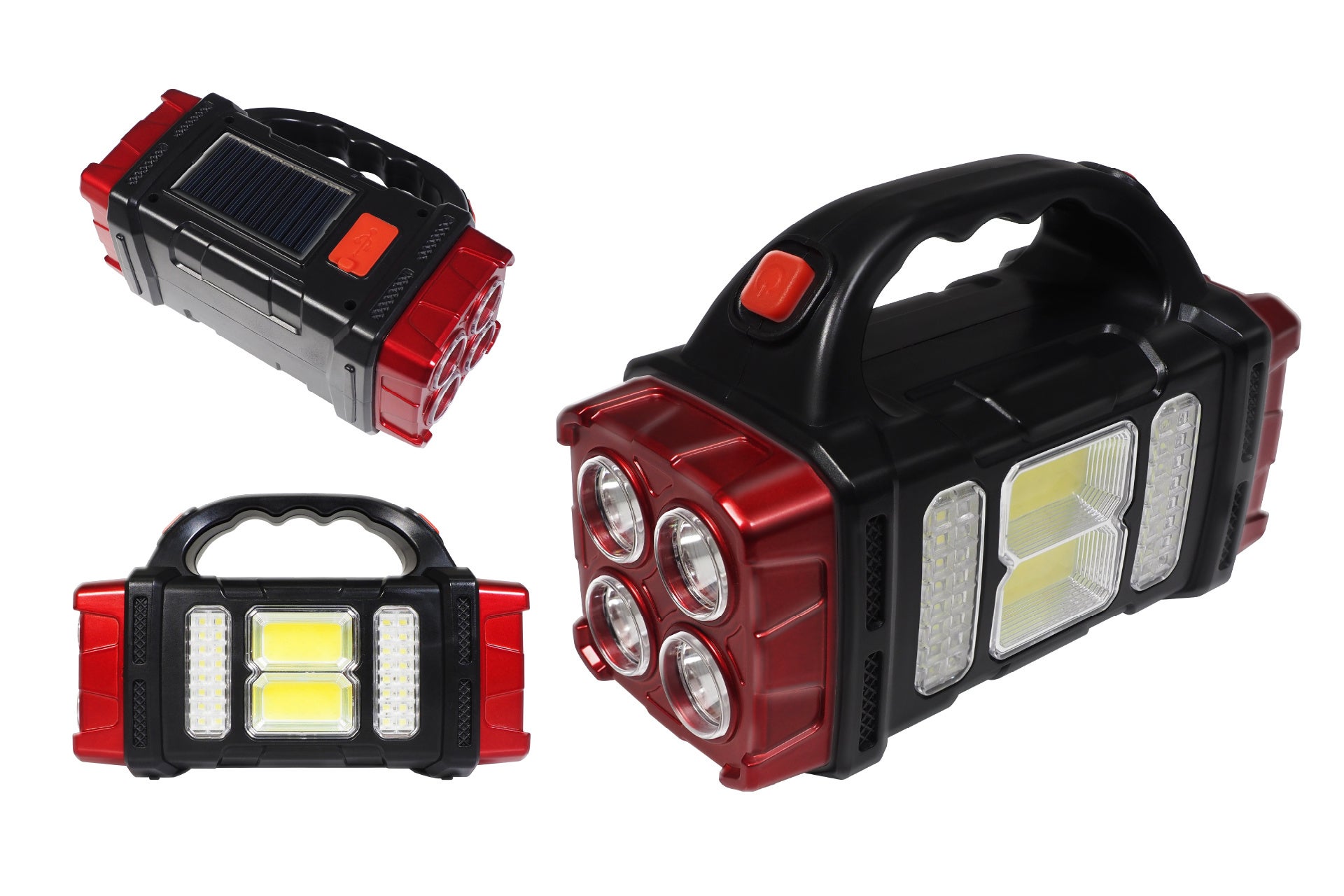 特徴:4種の点灯モード搭載で用途に合わせた最適な光を!1台3役をこなす多機能ライト。LED懐中電灯(暖色/寒色)COBランタンライト(2種)そして、外部出力USBポート付き!充電方式はソーラー&USB充電どちらも対応しています。夜間作業や、アウトドアなどもしもの時に備えて安心!