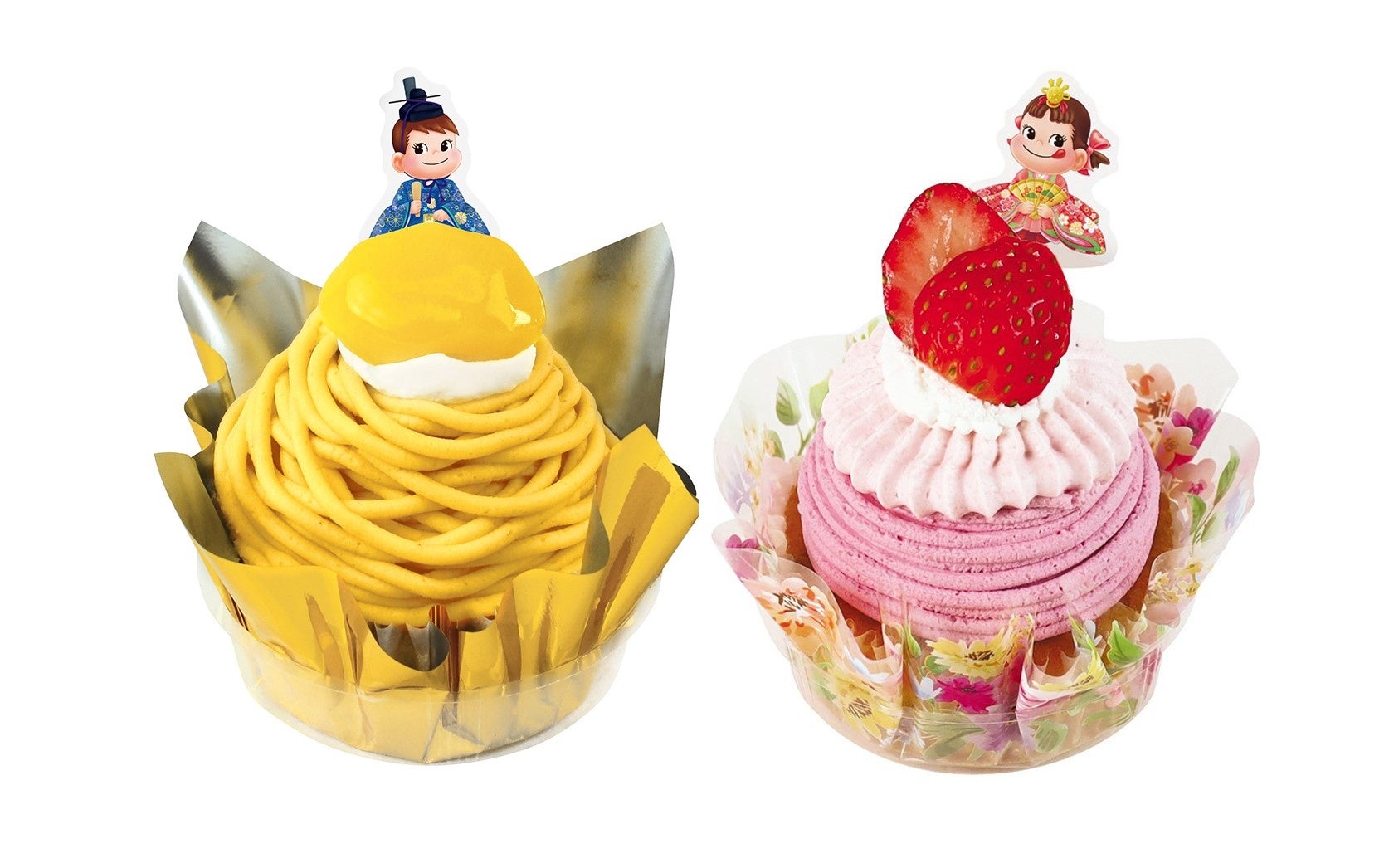 めびな・おびなに扮したペコちゃんとポコちゃんのぺーパープレートが可愛い、ふたつ並べてひなまつりを楽しめるモンブランです。
