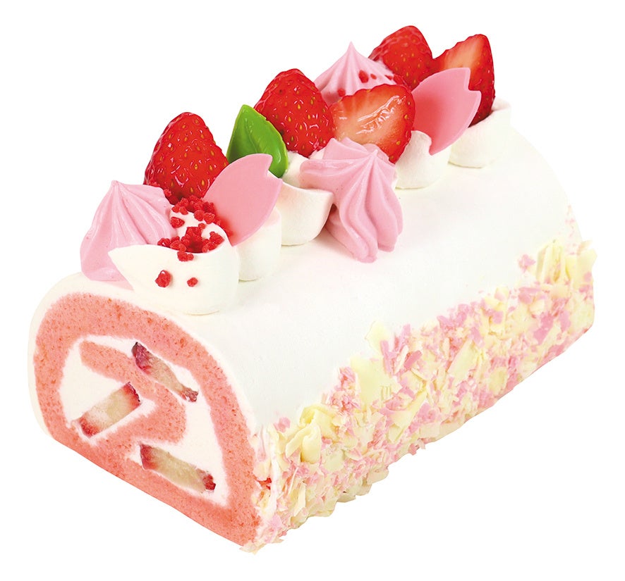 桃色のスポンジで、ミルキーシャンテリークリームと苺を巻いた、春に咲き誇る桜をイメージした可愛らしいロールケーキです。上面には国産苺のほか、桜の花に見立てて絞ったピンクシャンテリークリームや桜の花びらモチーフのチョコレートを飾り、サイドは舞い散る桜をイメージし、ピンクとホワイトの2色のチョコフレークで仕上げました。