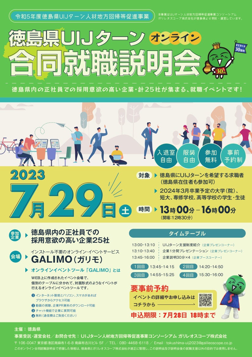 徳島で働きたい人のための「徳島UIJターン オンライン合同就職説明会」を7月29日(土)に開催