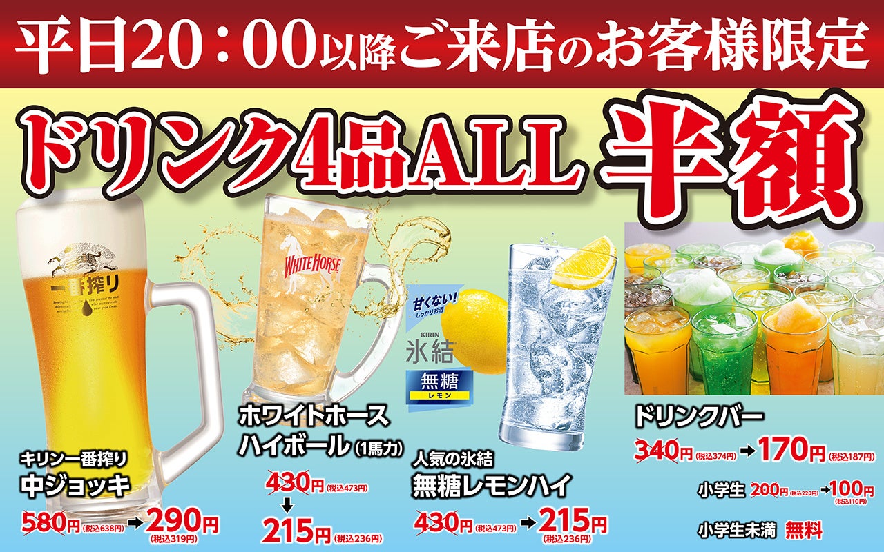 【内容】以下のドリンクがすべて半額!