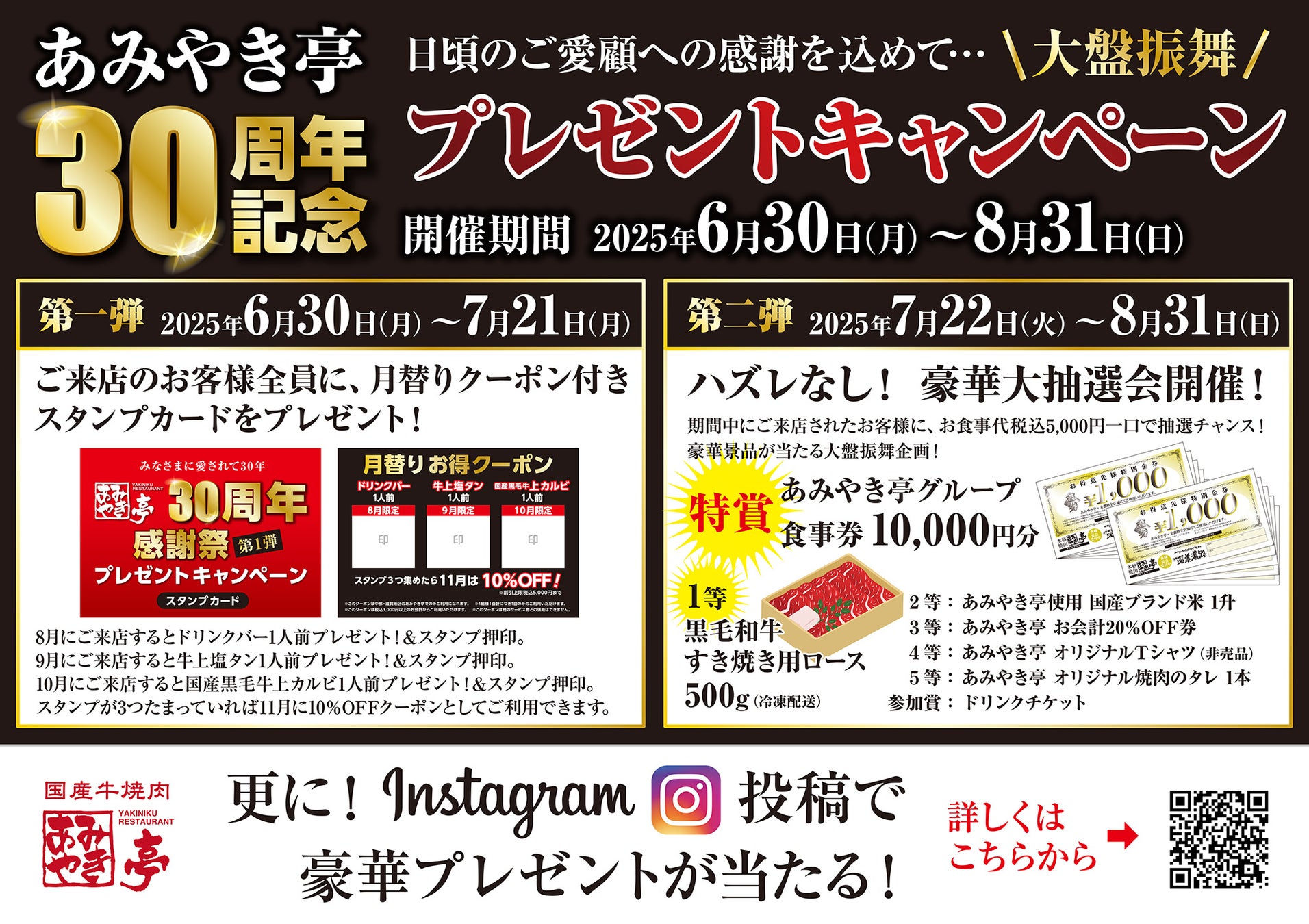 ◆ あみやき亭 創業30周年 感謝祭 開催中!