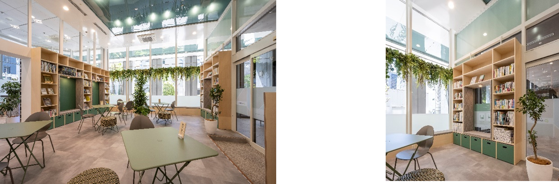 今回、本サロン計画に伴い、本の選書を紀伊国屋書店梅田本店に、ワークスペースの家具「ワークホームデザインパック」は株式会社オカムラにご協力をいただいています。
