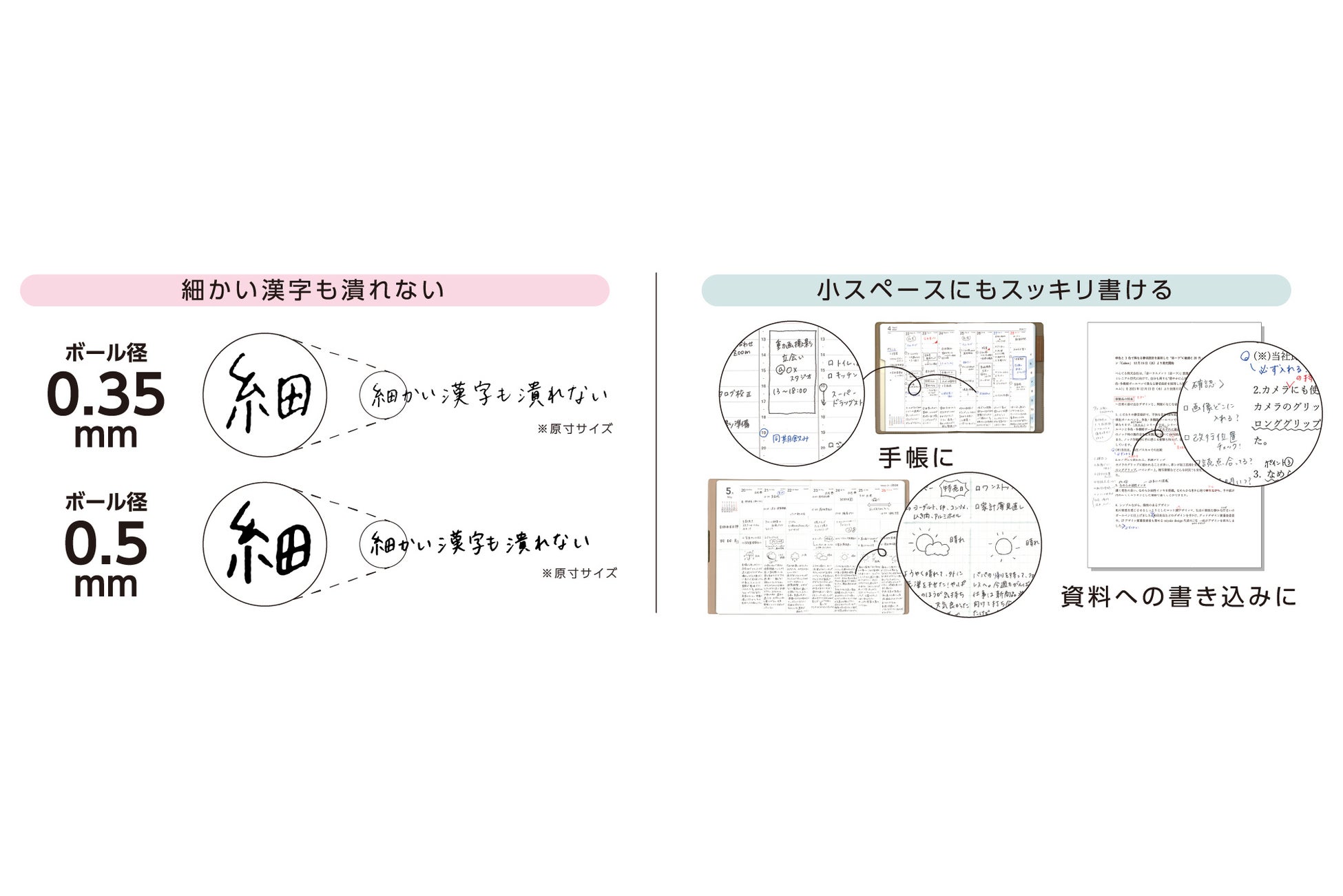1.「細さ」と「濃くなめらかな書き味」を両立した新開発の0.35㎜