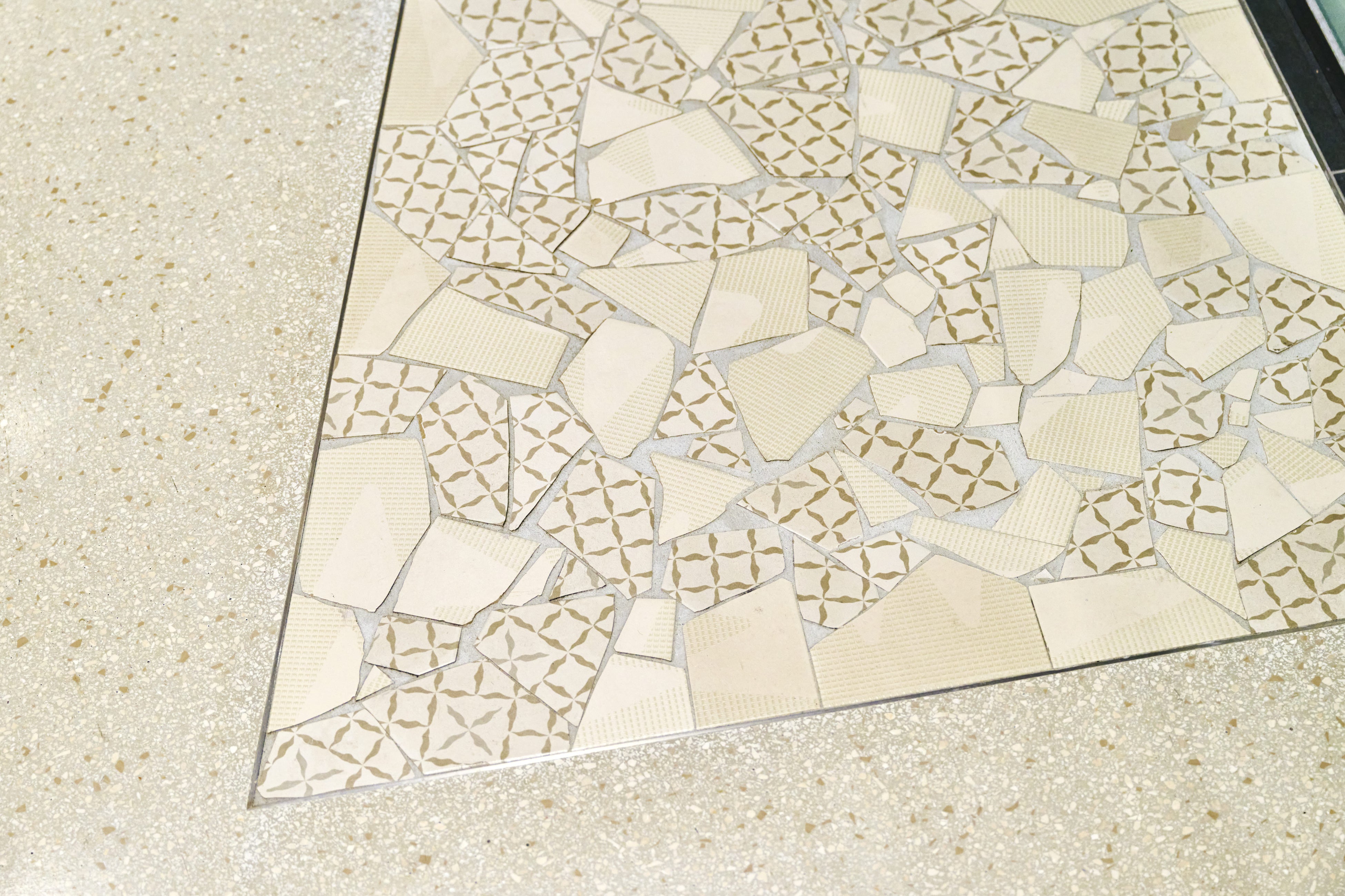 開業時からのデザインの美しさを大切にしながら、工事で出た廃材をアップサイクル。捨てられるはずだったタイルを、新しい通路としてよみがえらせました。