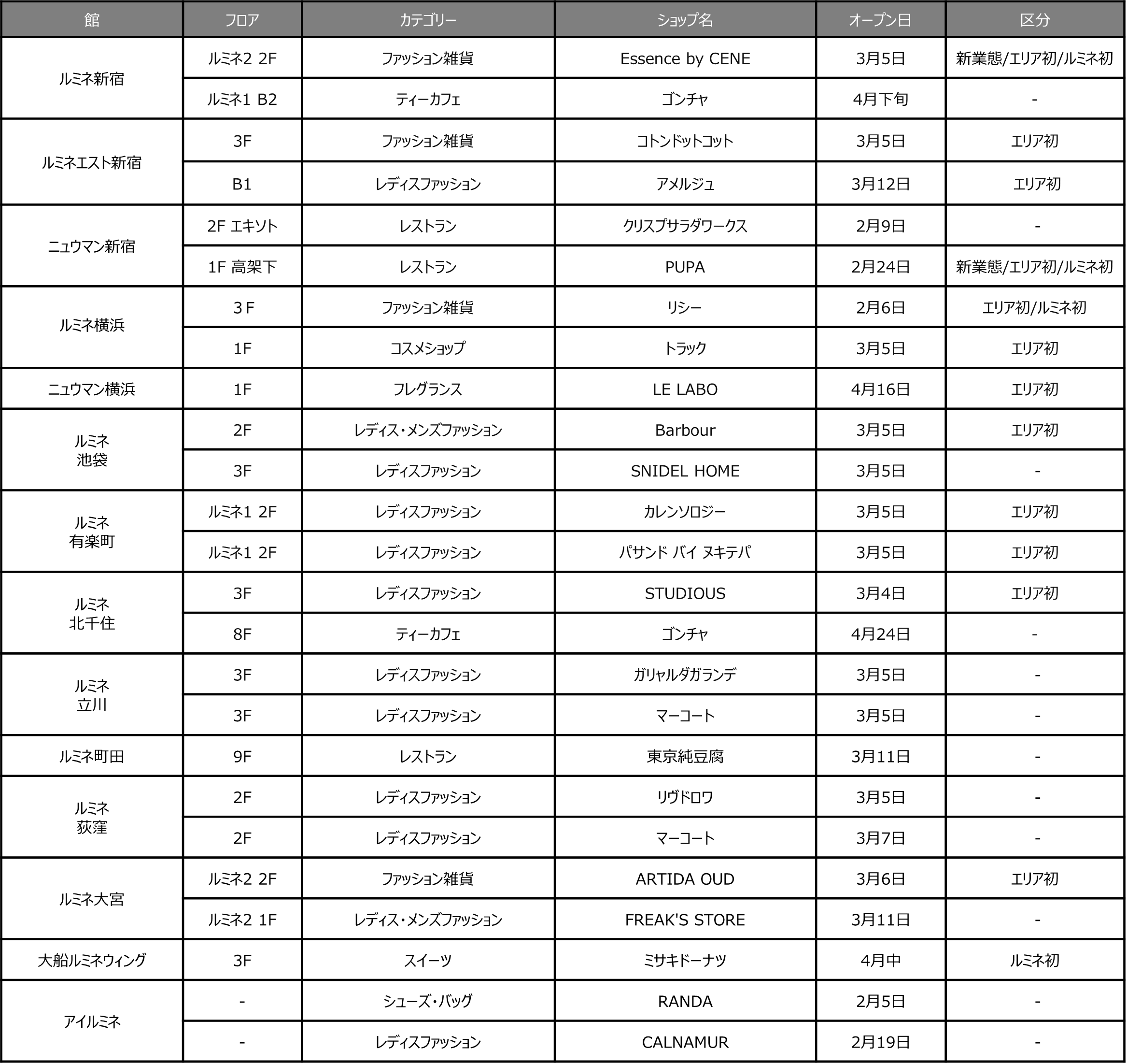 ルミネ初/エリア初