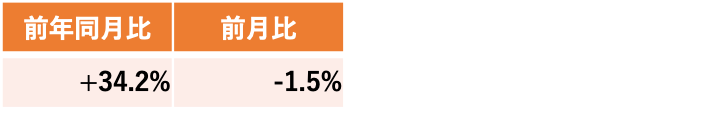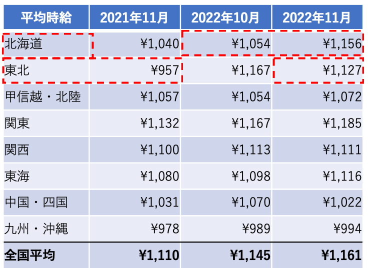 全国平均時給は、前年同月比、前月比でともに増加しています。