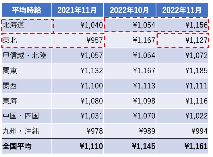 前年同月比で最も増加しているエリアは東北で、前月比で最も増加しているエリアは北海道となっています。 (2022年11月現在)