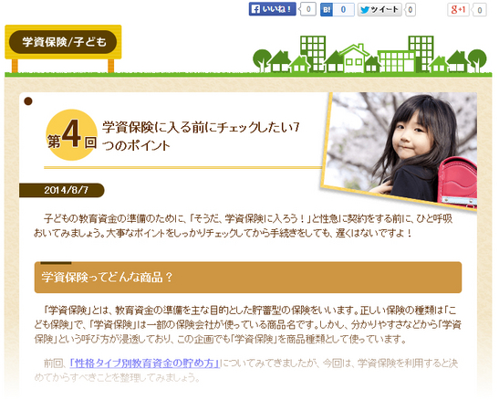 【連載コラム】消費税8-10%時代を生き抜くための「保険とマネーの知恵」学資保険/子ども 第4回 学資保険に入る前にチェックしたい7つのポイント