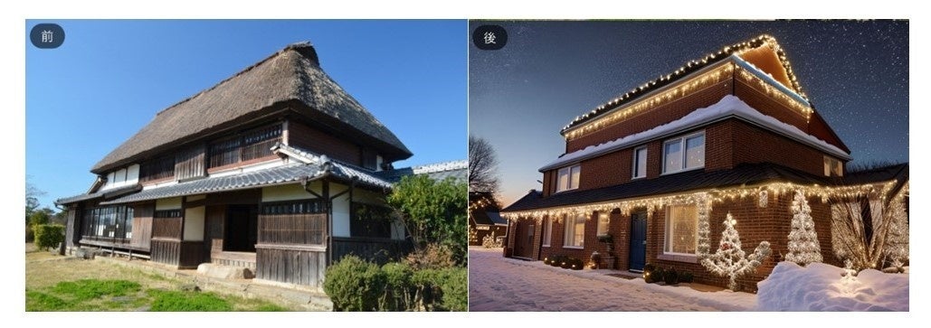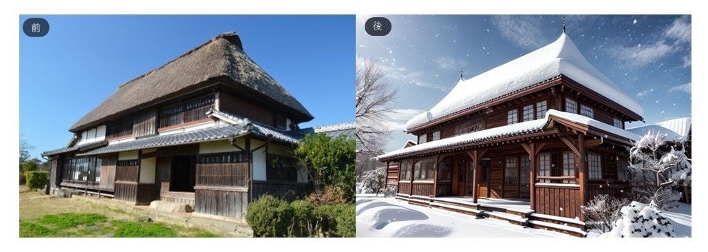 AI シーンは生成 AI 技術により、風景の建物などを残したまま、季節や周りの環境を自由に変えることができる機能です。