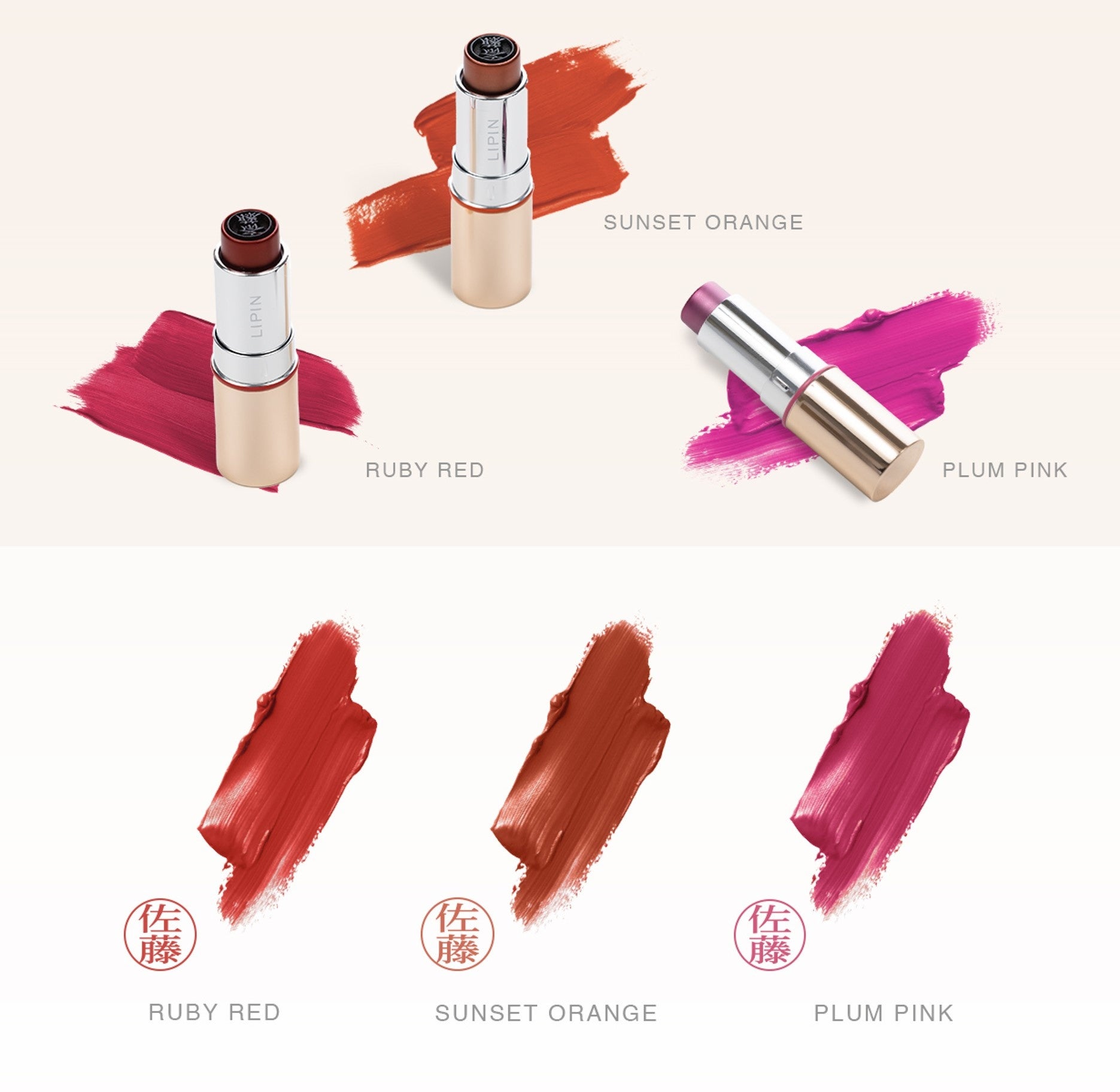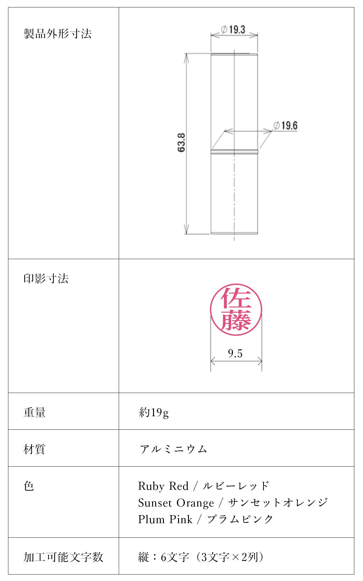 いつもの朱色だけじゃない、持つ人の魅力を引き出す3色のインキを用意。カラーラインナップは、シヤチハタのインキ配合技術を駆使して開発したルビーレッド、サンセットオレンジ、パルムピンクの3色。リップでも使用されるようなイエローベース、ブルーベースを意識したこだわり抜いた3色から、あなただけのリピンをお作りします。