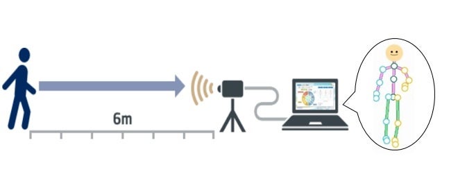6m程度の歩行により歩行姿勢を評価。歩き方のクセを見える化します。