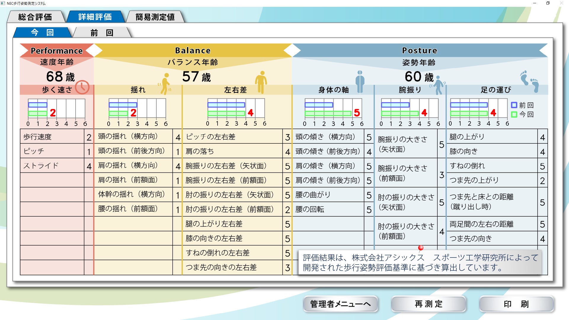 ※歩行姿勢評価基準は、アシックススポーツ工学研究所が開発