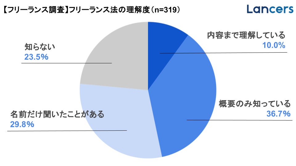 法の理解度: 「内容まで理解している」は、フリーランス10.0%、企業3.8%、ともに1割以下