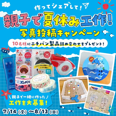 本キャンペーンは、ニチバン株式会社の「セロテープ®」と、両面テープ「ナイスタック(TM)」を使用して作った工作の写真をInstagramで投稿いただくキャンペーンです。投稿いただいた方の中から、10名様にニチバン製品詰め合わせをプレゼントいたします。