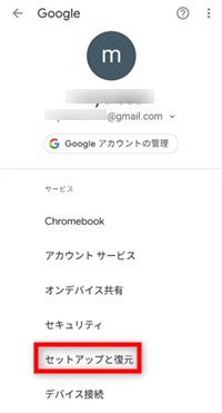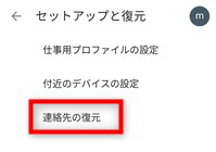 3、アカウントの管理画面で「セットアップと復元」をタップします。