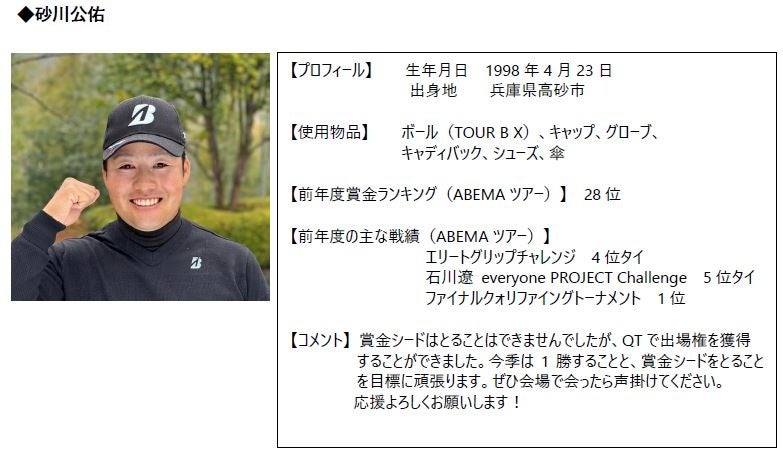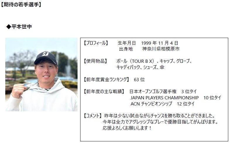 ブリヂストンスポーツ株式会社の契約選手が2024年の国内男子ツアーに参戦します。