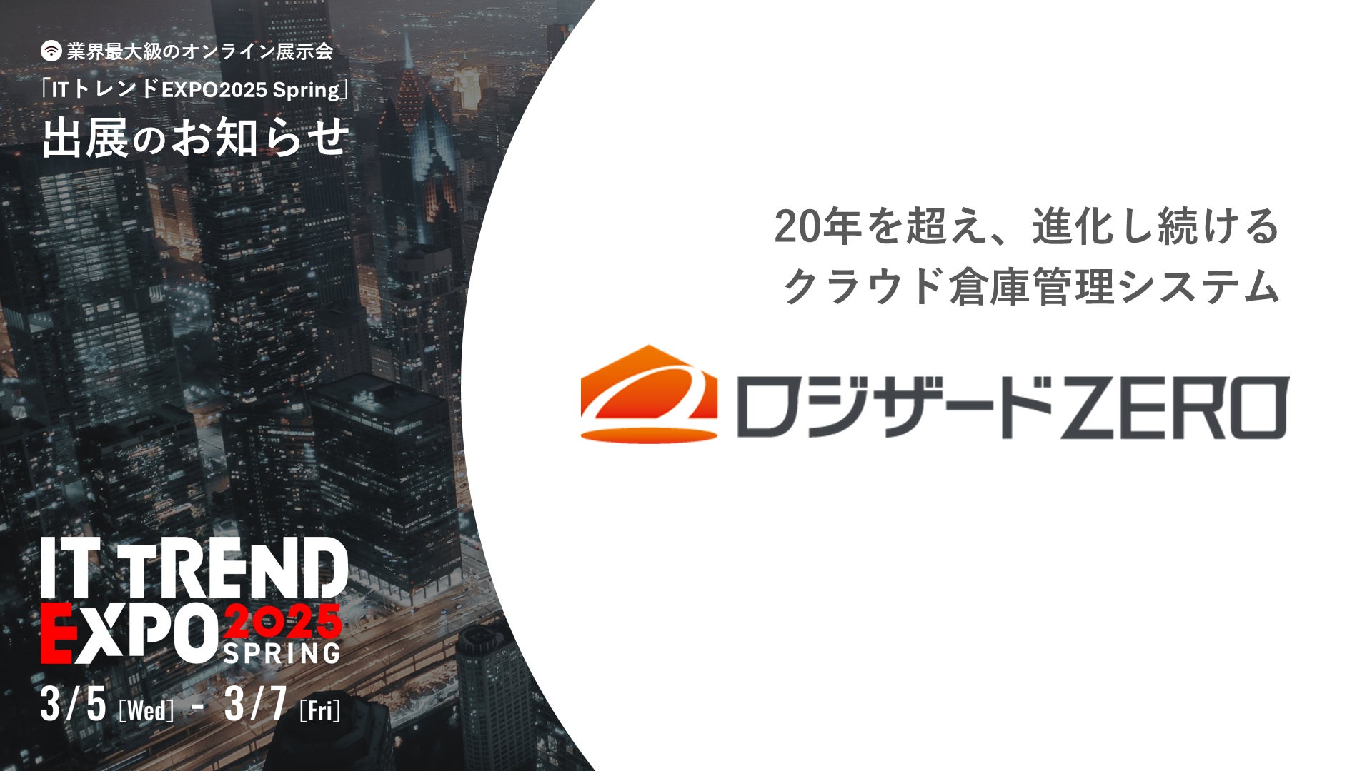 クラウド型在庫管理システムのリーディングカンパニーであるロジザード株式会社(東京都中央区、代表取締役社長:金澤 茂則、以下:ロジザード)は、IT製品の比較サイト"ITトレンド"主催の2025年3月5日から7日に開催するオンライン展示会『ITトレンドEXPO2025 Spring』に出展いたします。