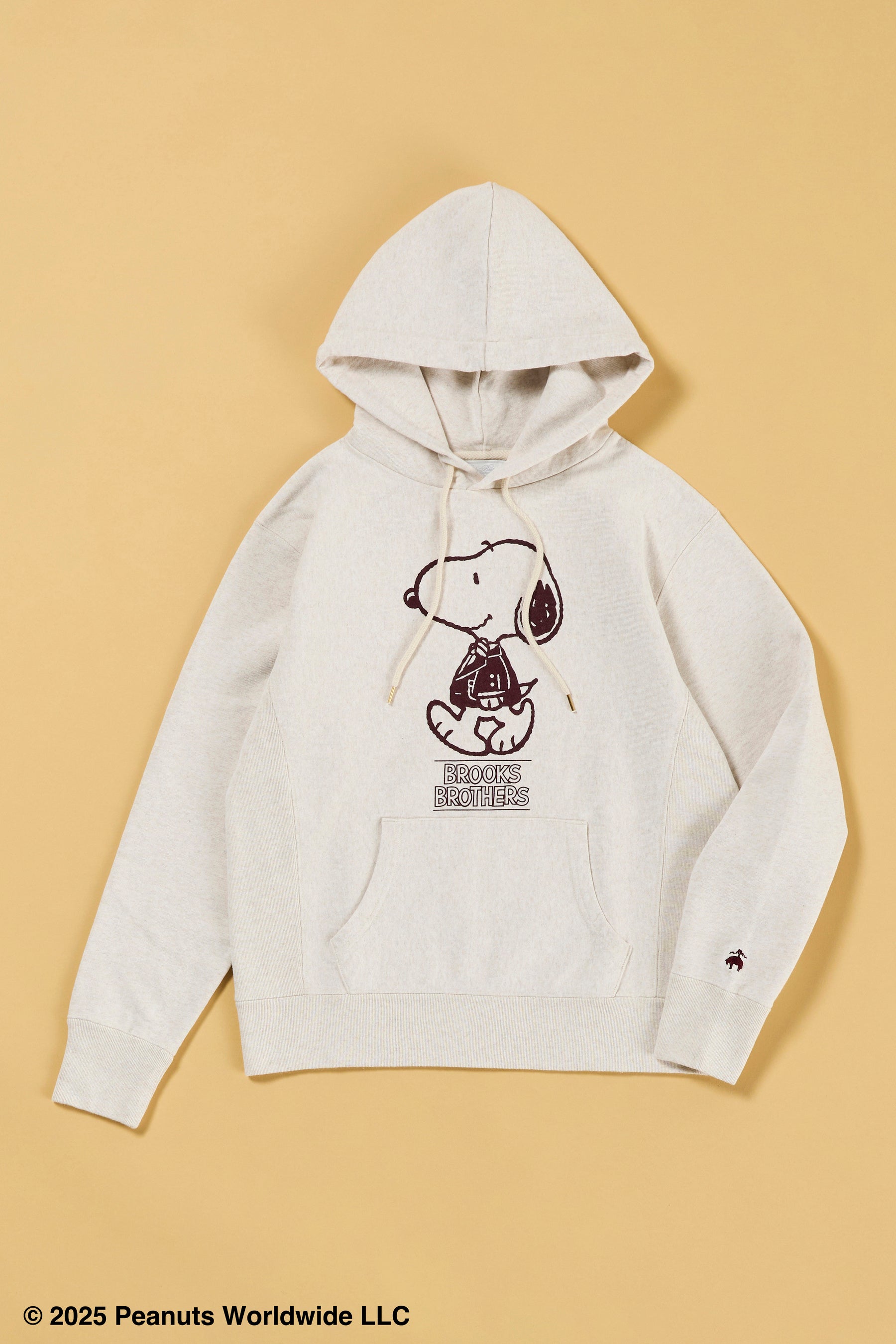 グレーとオートミールの2色展開で仕立てたプルオーバーフーディーは、ほどよくゆとりのあるシルエットでリラックス感のある着心地。胸元にはブレザーにガードストライプのボウタイを身につけたスヌーピーのプリントをあしらい、シンプルな中にキャラクターの存在感が映える一着です。厚みのあるコットン100%素材を用いることで、型崩れしにくくシーズンを問わず活躍。ユニセックスで着用可能なため、トラッドなスタイルの外しアイテムとしても、カジュアルなデイリースタイルの主役としても取り入れやすいデザインです。