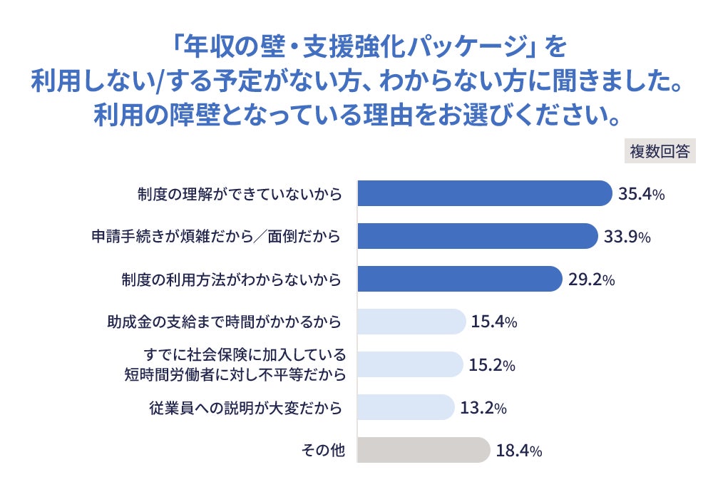 利用しない/する予定はない、未定の理由上位は「申請手続きが煩雑/面倒」「制度が理解できていないから」