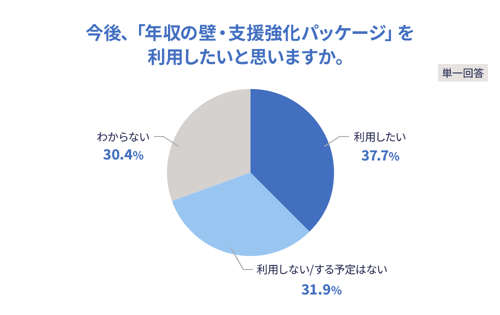 未利用者の「年収の壁」対策についての利用意向は、利用したい人が34.6%、使用しない(する予定はない)人が31.7%、わからないが33.7%