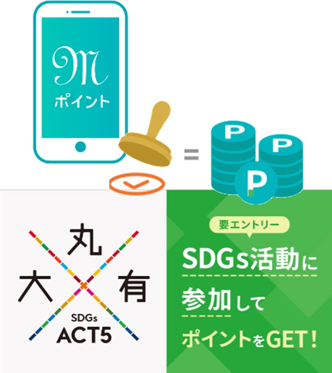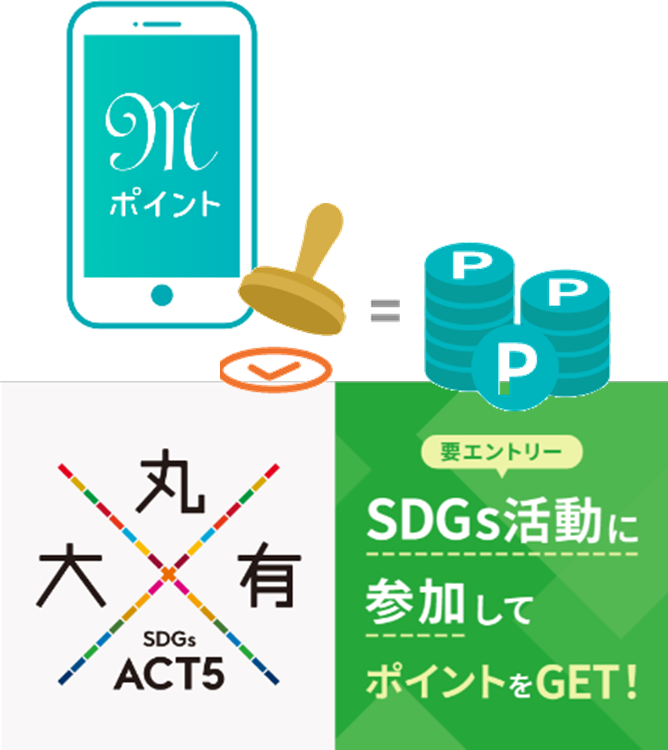 「大丸有SDGs ACT5」は2024 年度から「丸の内ポイントアプリ」と連携しており、大丸有 SDGs ACT5 実行委員会が開催するイベントへの参加など、SDGs アクションを起こすことで、丸の内ポイントを貯めることができます。