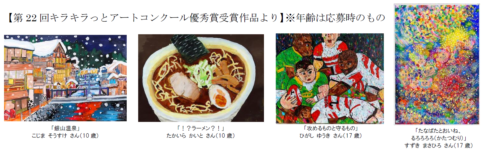 「キラキラっとアートコンクール」は、障がいのある子どもたちの可能性を応援したいとの想いから、国内初の障がい者アートライブラリー「アートビリティ※」を運営する社会福祉法人東京コロニーの協力を得て2002年にスタートし、今年度は23回目の開催となります。今までこのコンクールに参加してきた子どもたちが社会に巣立っていき、現在アートビリティの登録作家として27名が活躍するなど、子どもたちの才能を支援してまいりました。