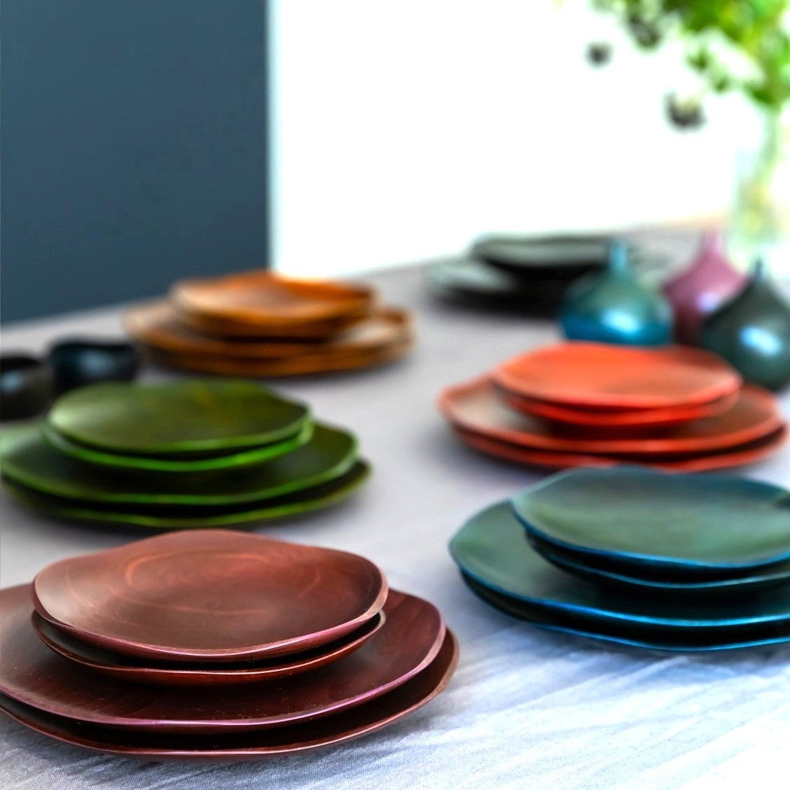 従来の漆器にはない形とカラフルな色展開。山中漆器の技術が活かされた漆塗りは、時間をかけて飴色からゆっくりと下地の色が顔を出し、経年変化も楽しめます。