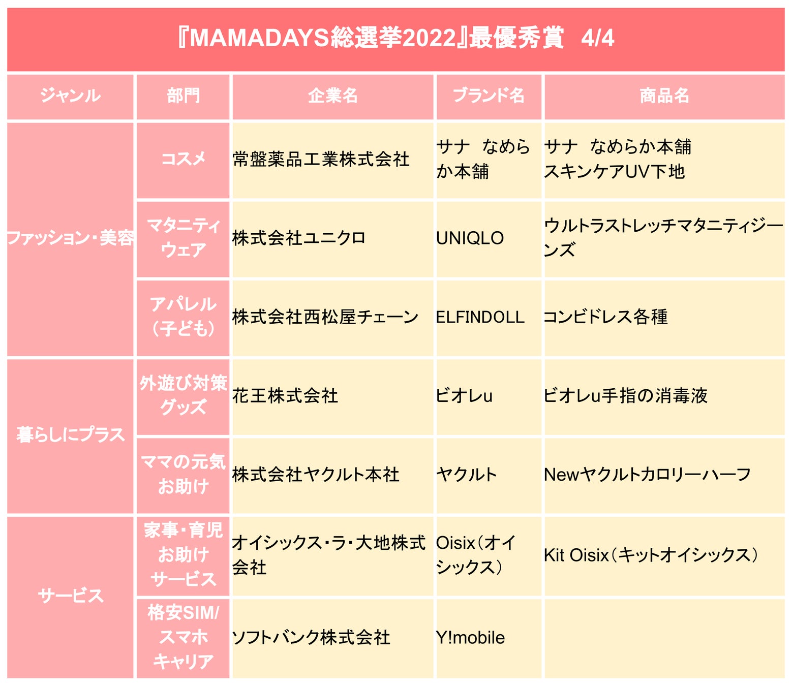 ▼「MAMADAYS総選挙2022」結果発表の詳細はこちらをご覧ください。