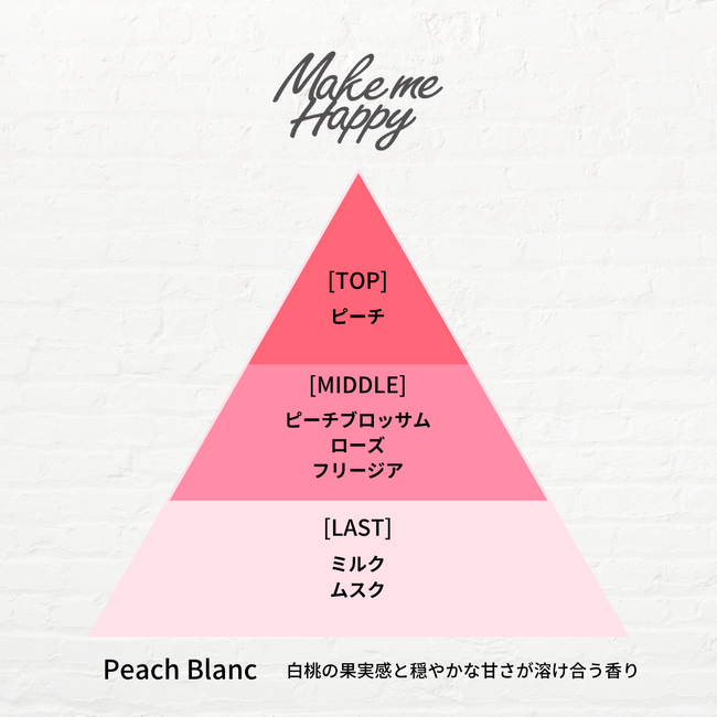 また、フレグランスブランド「メイクミーハッピー」のロールオンタイプのオードトワレから、新しい香り「Peach Blanc(ピーチブラン)」を同時発売いたします。