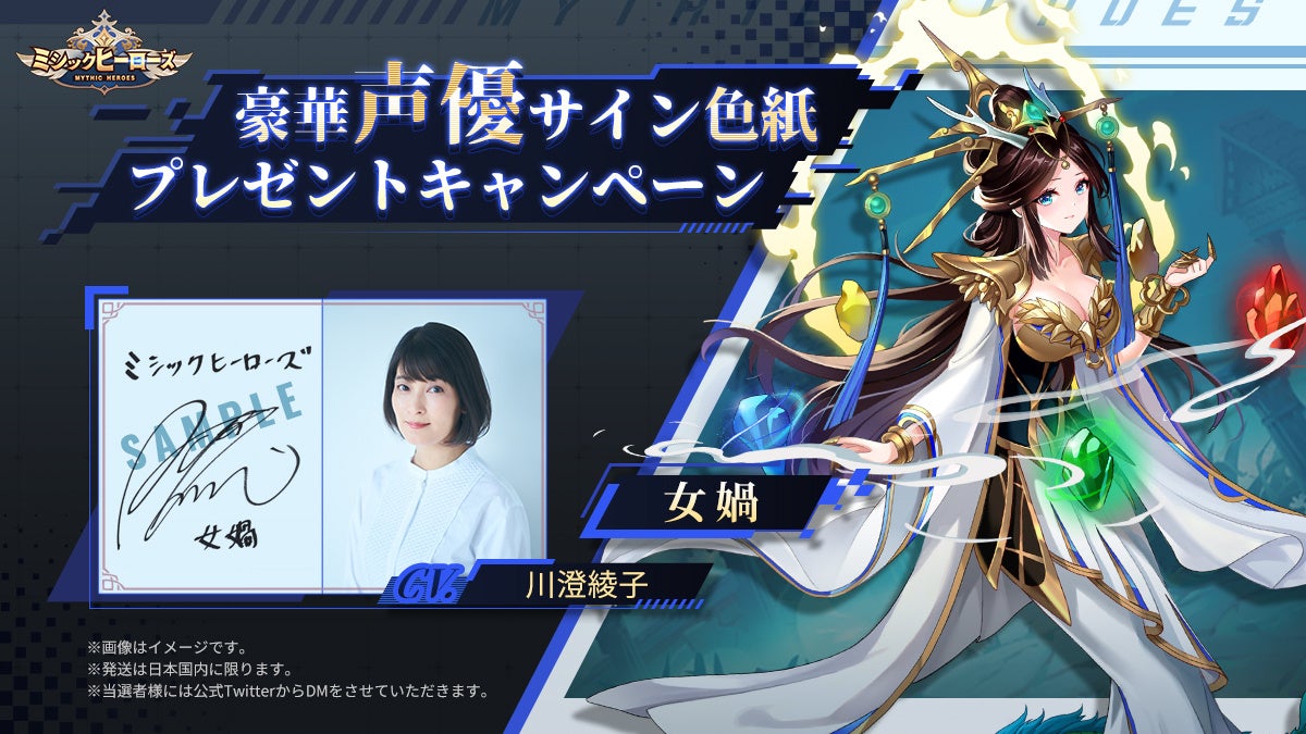 ミシックヒーローズ、「女媧役:川澄綾子さん」のサイン色紙が当たる『豪華声優サイン色紙プレゼントキャンペーン 第3弾』開催!