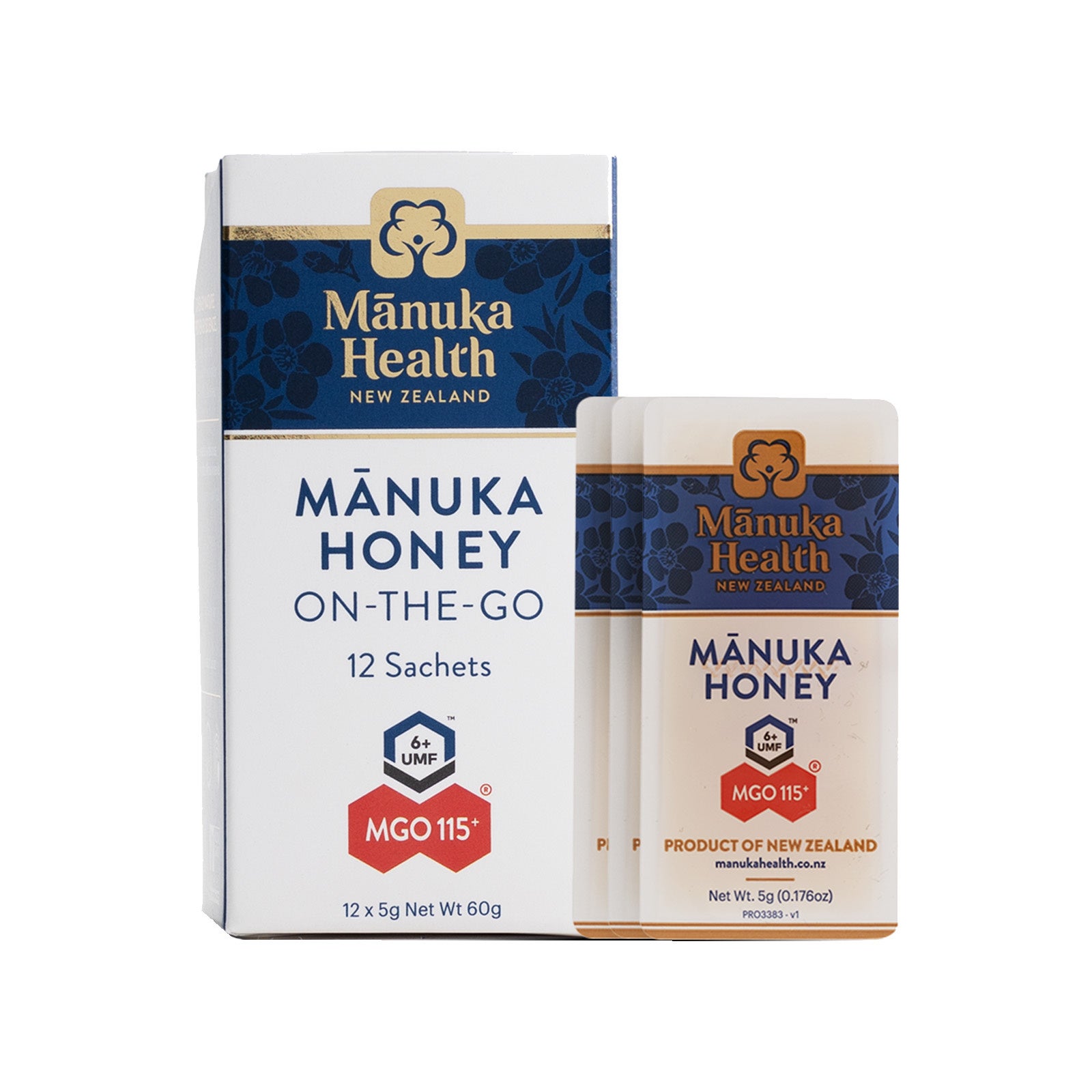 「マヌカハニーMGO115+」に持ち運びしやすい「マヌカハニー スナップパック」のセット。