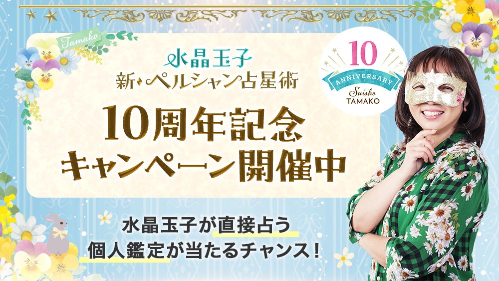 株式会社CAM(本社:東京都渋谷区、代表取締役社長:須田瞬海、以下CAM)は、運営する水晶玉子の公式占いサイト「水晶玉子 新ペルシャン占星術(https://suisho-tamako.marouge.jp/)」の10周年を記念して特別キャンペーンを開催いたします。