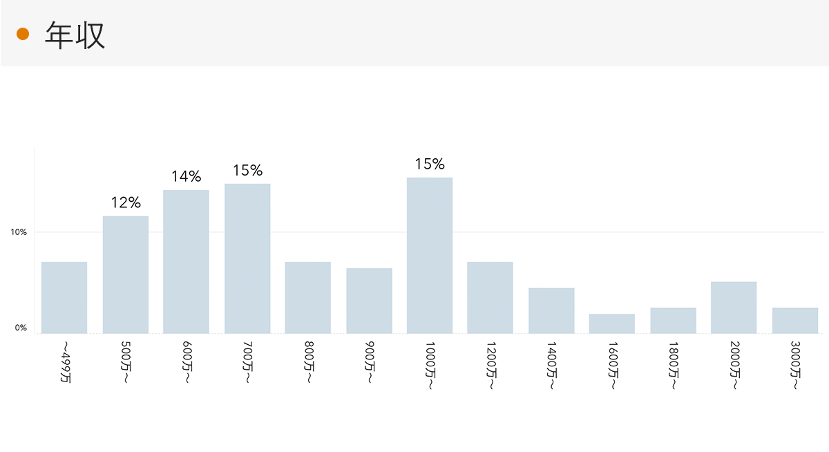 ※ 年収は100万円単位とし、1,000万円以上は200万円単位、2,000万円以上は1,000万円単位で分類しています。