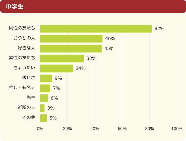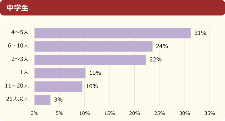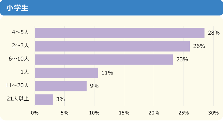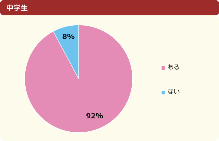 昨年の調査では「新型コロナの影響で」と答えた小中学生は全体の50%に達しており、長引くコロナ禍での慣れや、行動規制緩和の影響による意識の変化を見ることができる結果となりました。(注1)
