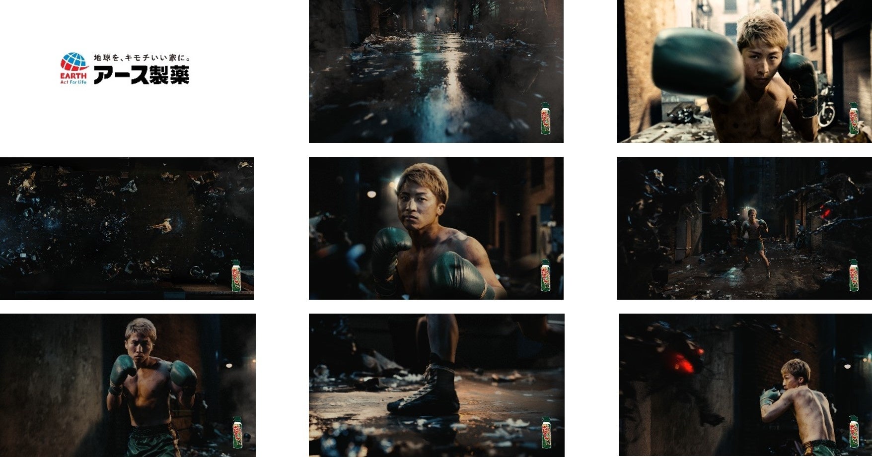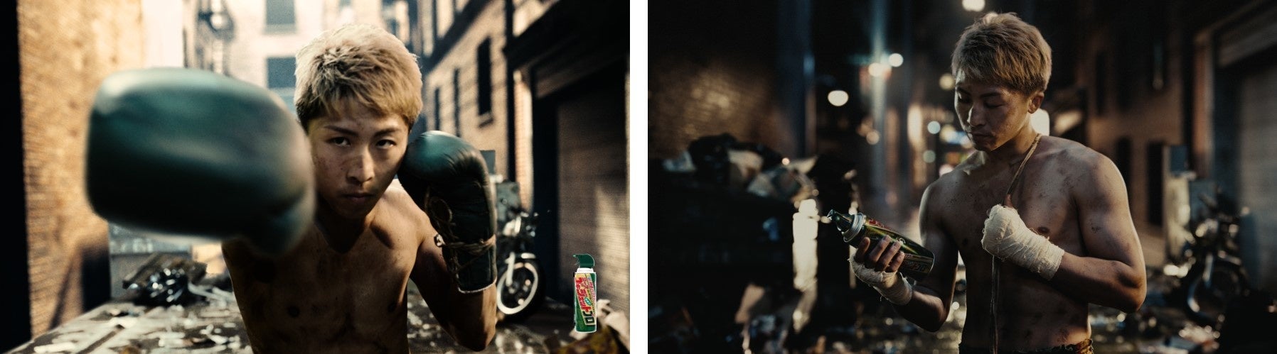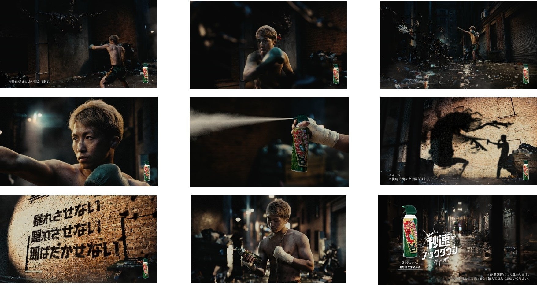 本CMでは、『ゴキジェットプロ』の「強力ジェット噴射でゴキブリに逃げる時間を与えず秒速でノックダウンする」という特長を、数々の強敵を秒殺で倒してきた井上選手のパンチと掛け合わせて伝えています。井上選手が世界を股にかけて戦っているということで、CMは海外の路地裏をイメージした舞台で制作されており、数多の敵を倒してきた必殺仕事人かのような姿に注目です。ぜひご覧ください。