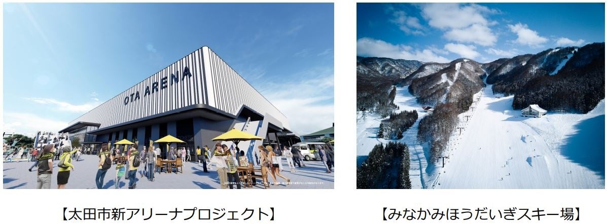 現在の主な取組︓太⽥市新アリーナプロジェクト・みなかみまちづくりプロジェクト(⽔上温泉街再⽣・みなかみほうだいぎスキー/キャンプ場)・桐⽣南⾼校跡地活⽤プロジェクト・群⾺クレインサンダーズ・オープンハウスの森プロジェクト