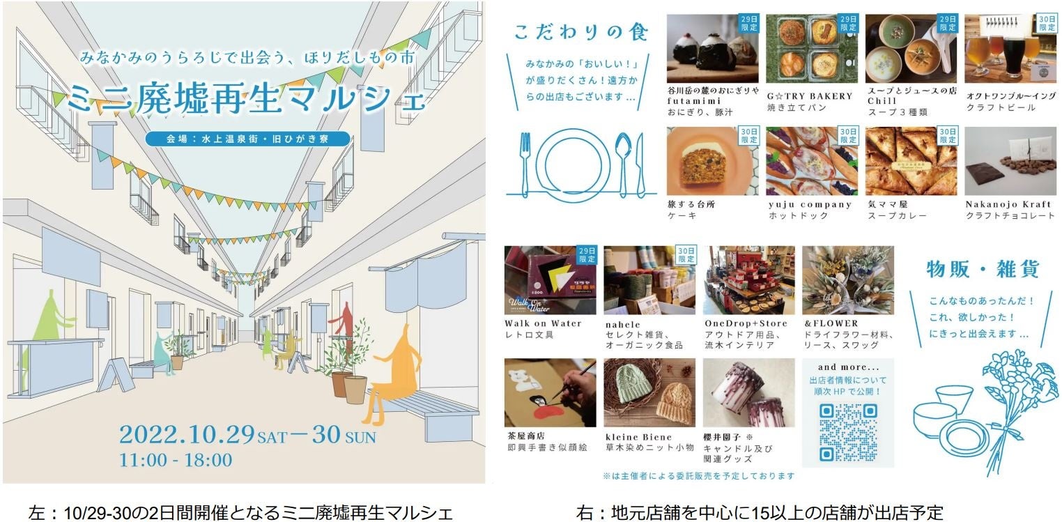 参考リリース︓群⾺県みなかみ町・⽔上温泉で「ミニ廃墟再⽣マルシェ」初開催 2022/10/29-30