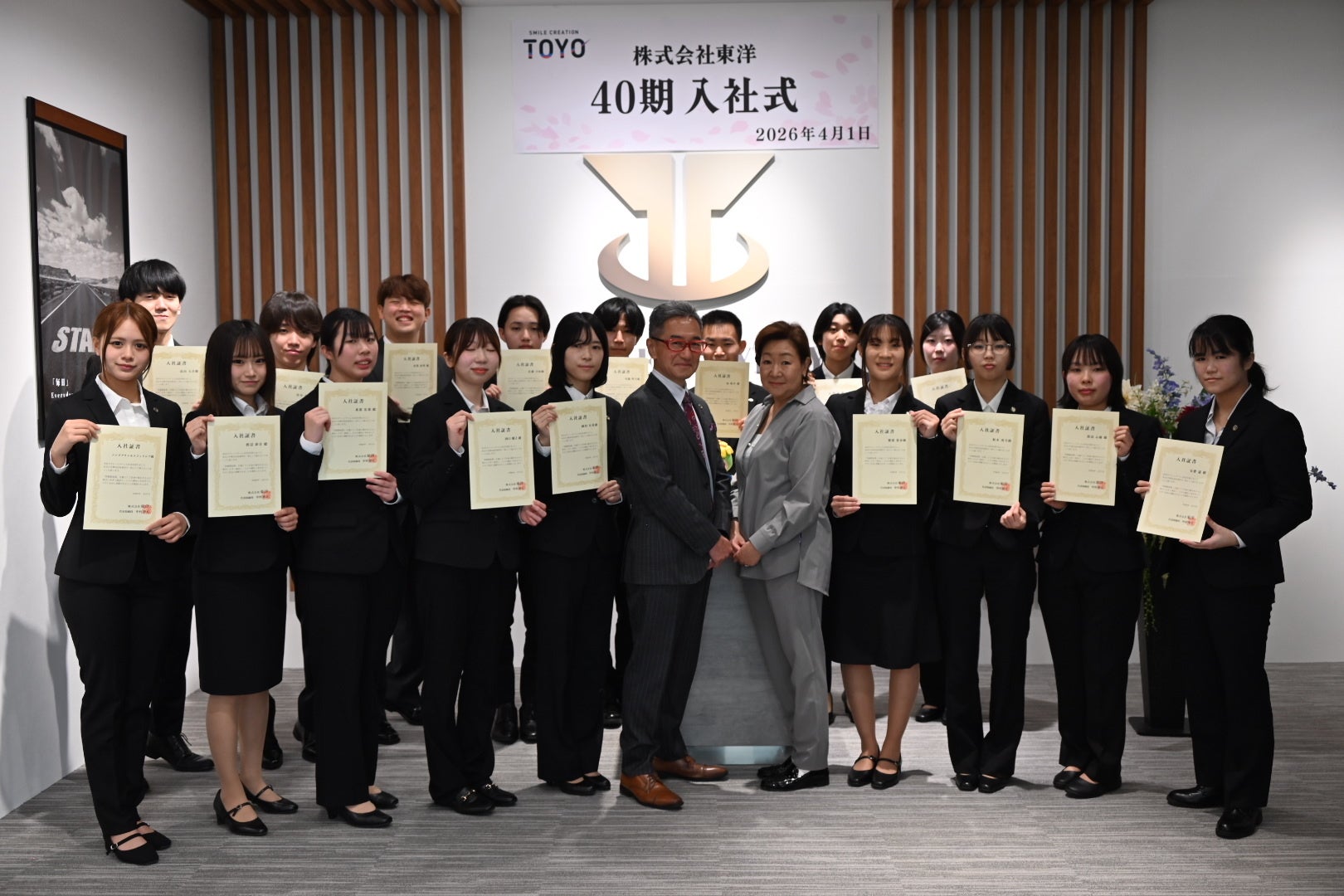 「笑顔創造」を企業理念に掲げる株式会社東洋(本社:埼玉県桶川市、代表取締役:中村秀夫)は、2026年4月1日(水)、本社にて新入社員17名の入社式を開催しました。