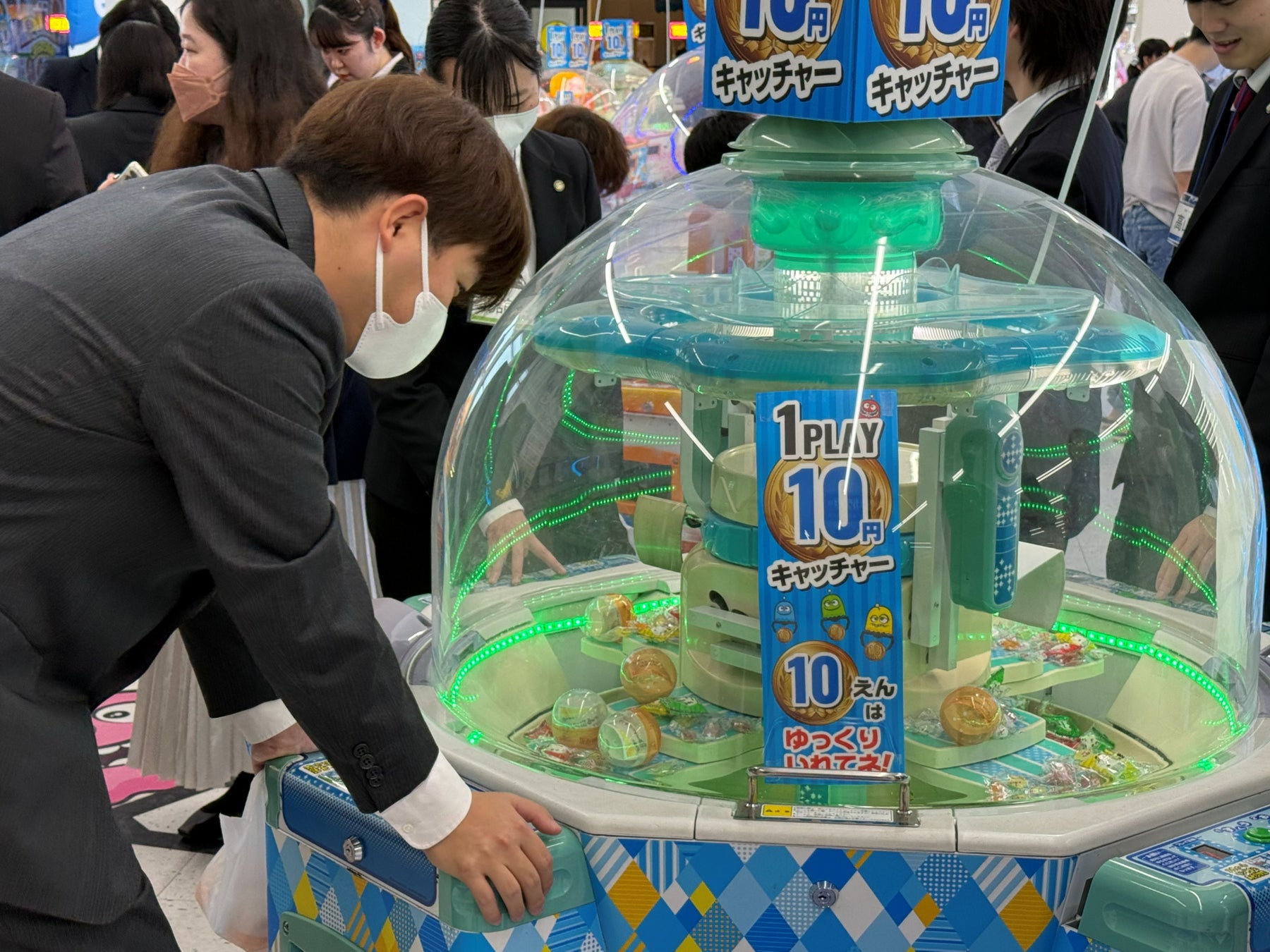 「自己実現キャッチャー」は、同社が展開するクレーンゲームのテーマパーク「エブリデイ」で人気の“10円キャッチャー”をベースに、入社式用に開発されたオリジナル機です。