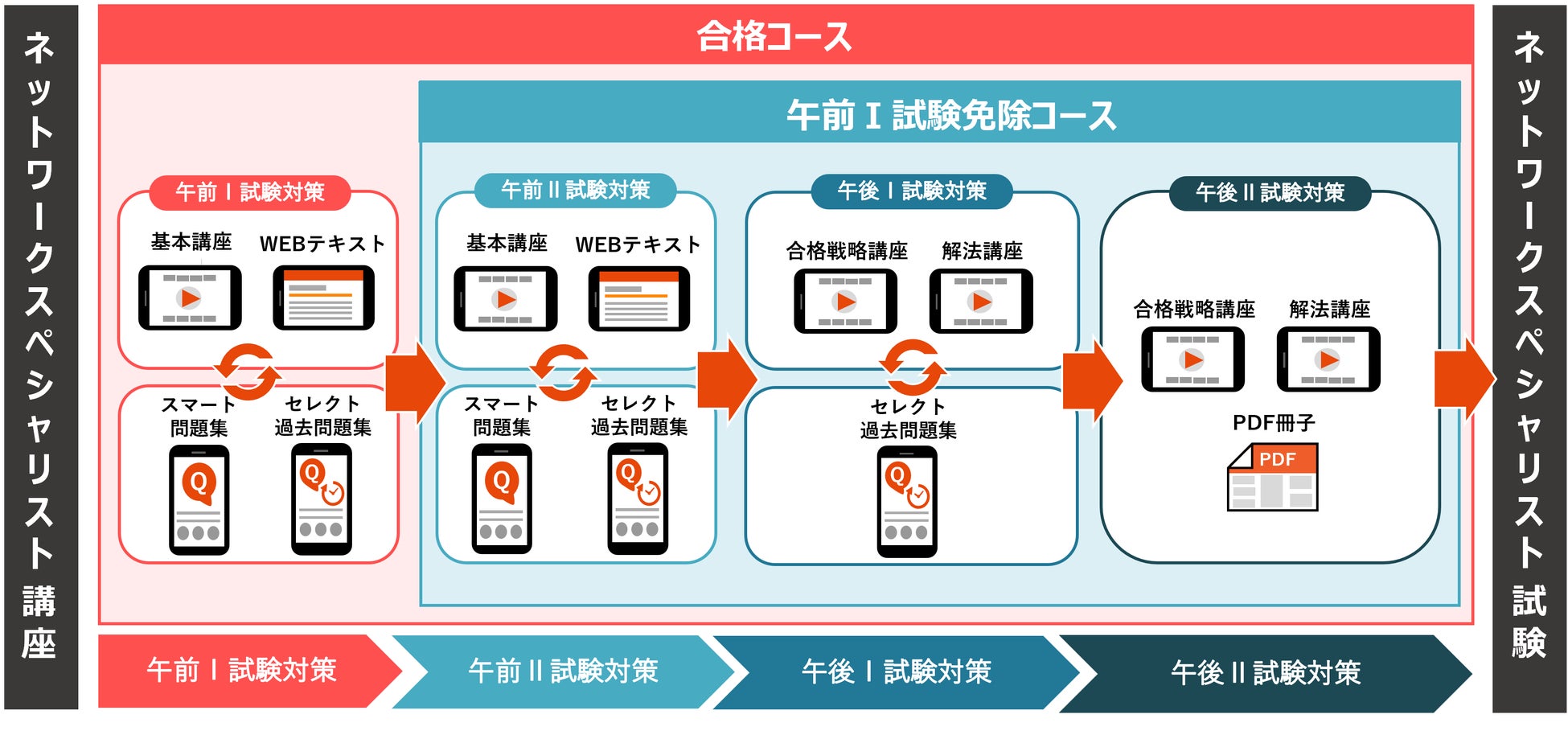 午前Ⅰ~午後Ⅱ試験まで、合格に必要な教材が全て揃っており、スタディングだけでネットワークスペシャリスト試験合格を目指すことが可能です。