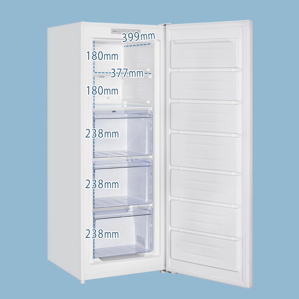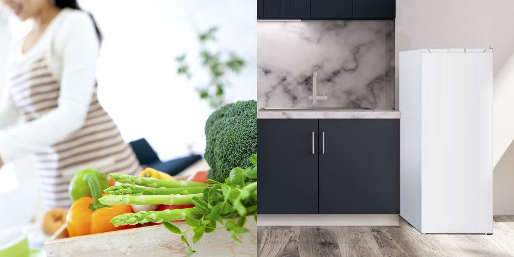 マクスゼンの冷凍庫・冷蔵庫ではおなじみのスリムボディとシンプルなデザインは本製品でも健在です。幅は54cm程度で、現在お使いの冷凍庫に並べて設置してもあまり場所を取りません。そしてシンプルかつスタイリッシュなデザインは、キッチンはもちろん、リビングに置いてもインテリアの邪魔をせず生活風景にマッチする仕上がりです。