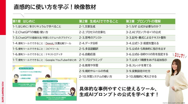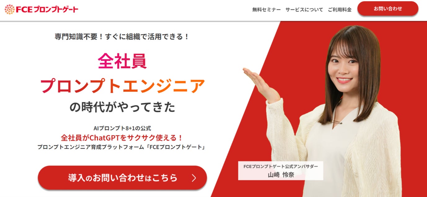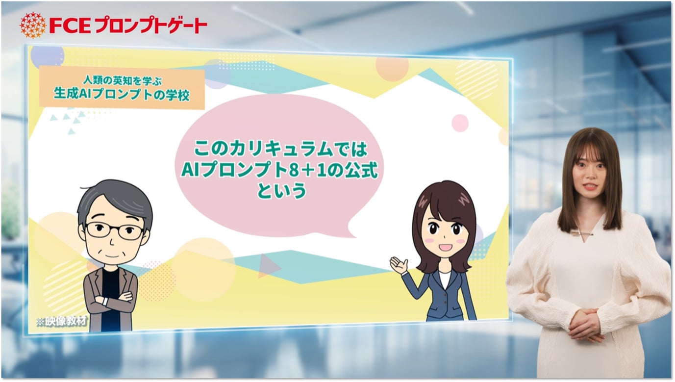 株式会社FCE (代表取締役社長:石川淳悦、本社:東京都新宿区、東証:9564)は、生成AI組織活用プラットフォーム「FCEプロンプトゲート」のAI基礎知識やプロンプトの公式・作成を学ぶ動画教材を大幅アップデートしました。このたびのアップデートでは、動画教材を16本ほど追加、また公式アンバサダーの「山崎怜奈さん」も動画教材に登場します。生成AIを駆使して、組織の業務改革に挑む皆さまをサポートしてまいります。