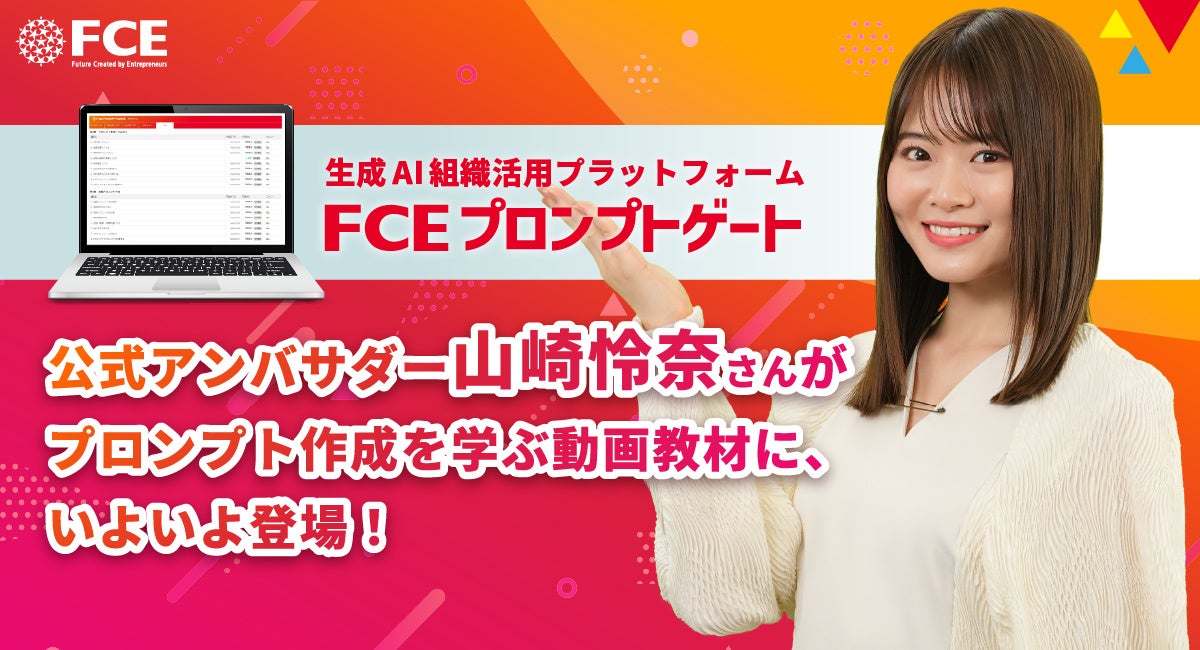 FCEプロンプトゲート公式アンバサダー「山崎怜奈さん」がプロンプト作成を学ぶ動画教材に、いよいよ登場!
