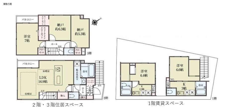 当物件は2棟建築され、それぞれご購入された方の用途は次の通りです。1棟目:お客様は、二世帯住宅をご検討中に「戸建て大家さん®」を知り、ご見学された結果、1階部分は賃貸でなく居住スペースとすることで、二世帯住宅としてご購入されました。2棟目:法人の方が1階部分を社員寮として利用し、先々は投資物件へ利用変更を検討できるとしてご購入に至りました。