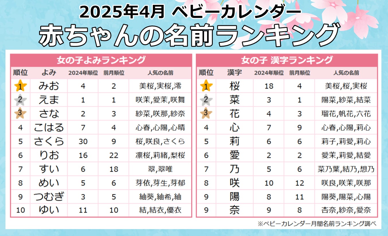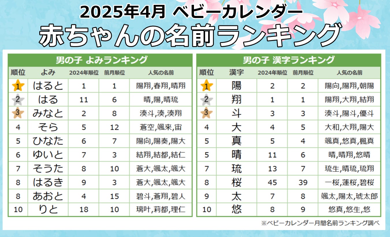 「サクラネーム」「はるネーム」「フラワーネーム」が大集合!三音ネーム&ジェンダーレスネームも話題に!「陽」と「桜」が主役!2025年『4月生まれベビーの名付けトレンド』発表