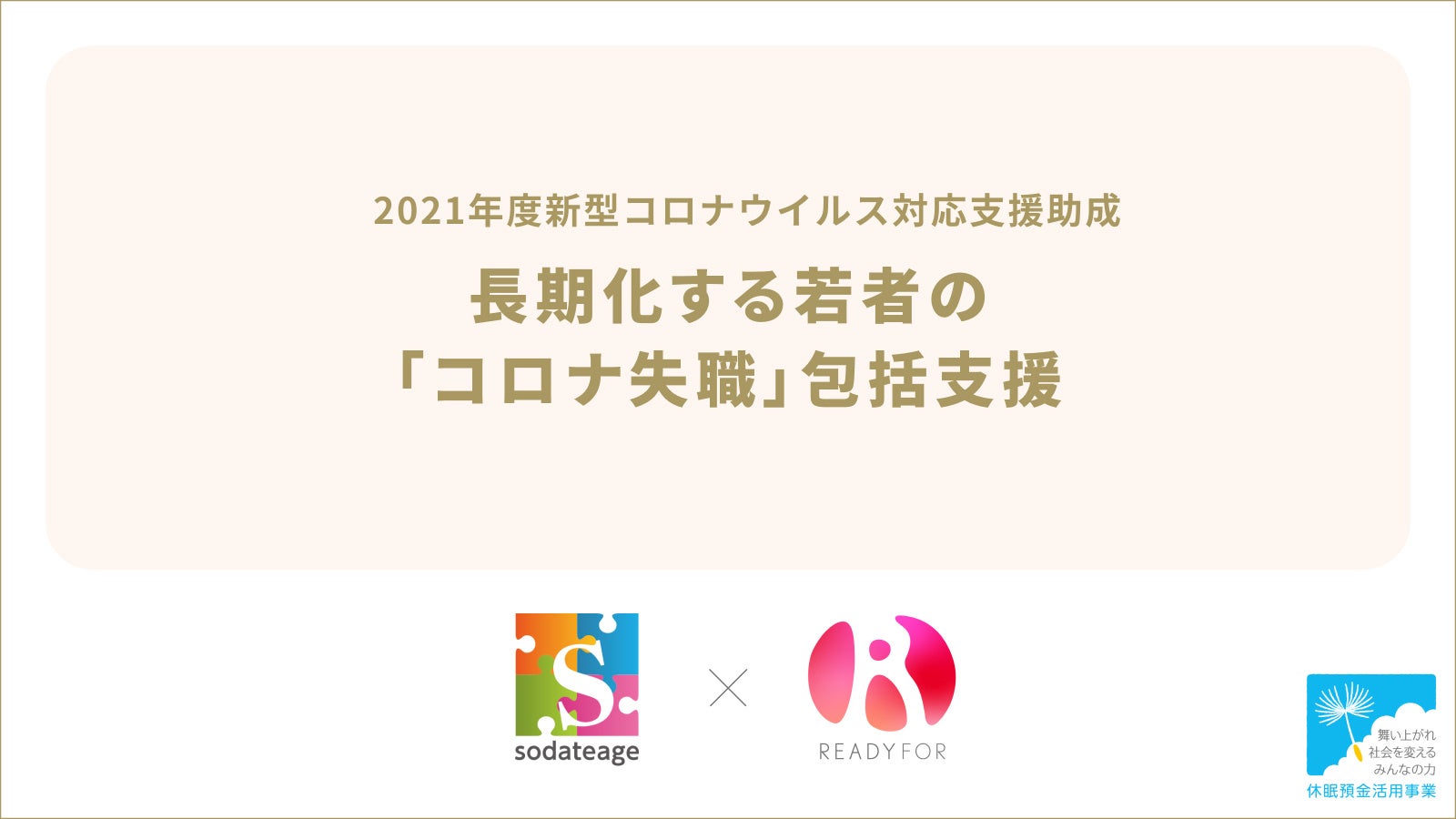 認定特定非営利活動法人育て上げネット(所在地:東京都立川市、代表:工藤啓)とREADYFOR株式会社(所在地:東京都千代田区、代表取締役CEO:米良はるか)は、約4億円の休眠預金を活用し、若者の「コロナ失職」包括支援プログラム(以下「本取り組み」)を開始いたします。