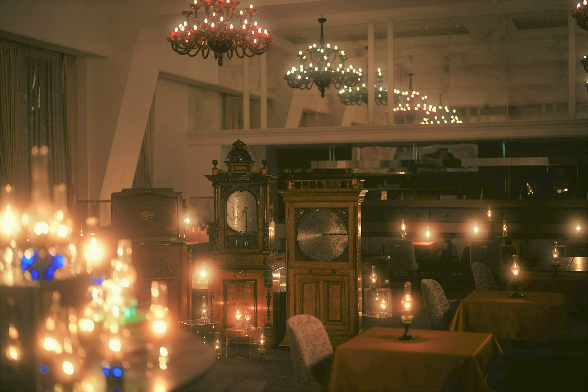 当イベントは、旧小樽商工会議所の大会議室だった場所をリノベーションした「OMOカフェ&ダイニング」で行います。イベントタイム限定で、小樽の老舗ブランド「北一硝子」のオイルランプを空間全体に灯し、クラシックなデザインのテーブルクロスやクッションを設えます。レトロな空間であたたかい炎のゆらぎを眺めながら優雅に過ごすことができます。