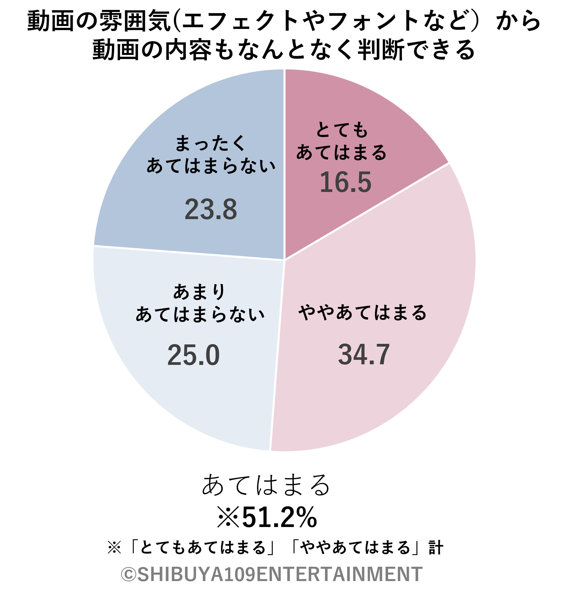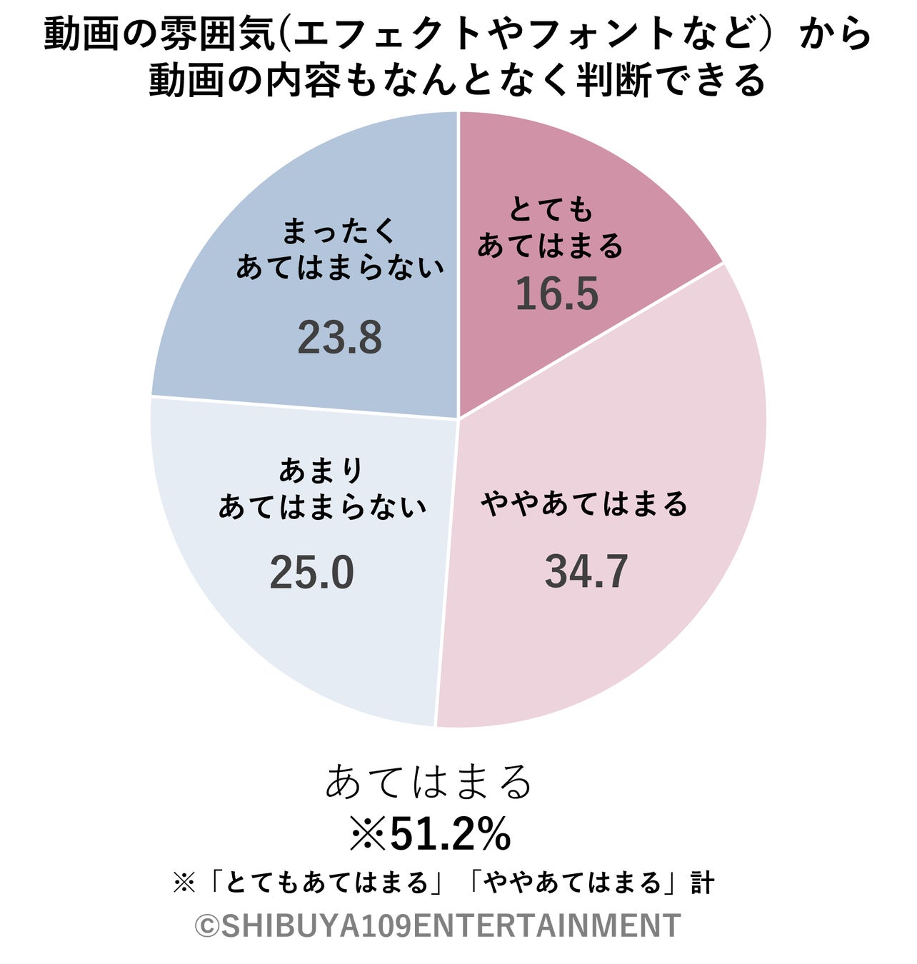 「動画の雰囲気(エフェクトやフォントなど)から動画の内容もなんとなく判断できる」※図18と回答したのは約半数以上となり、グループインタビューでも「私はアイドルに興味がないので、アイドルのヲタ活っぽい雰囲気がある動画はスワイプする。ハートやピンクのエフェクトや、使用している音楽から、(最後まで視聴しなくても)すぐにその動画の内容がわかる」という声がありました。Z世代は動画の雰囲気を素早く感じ取ることができ、動画コミュニケーション力が高いことが感じられます。